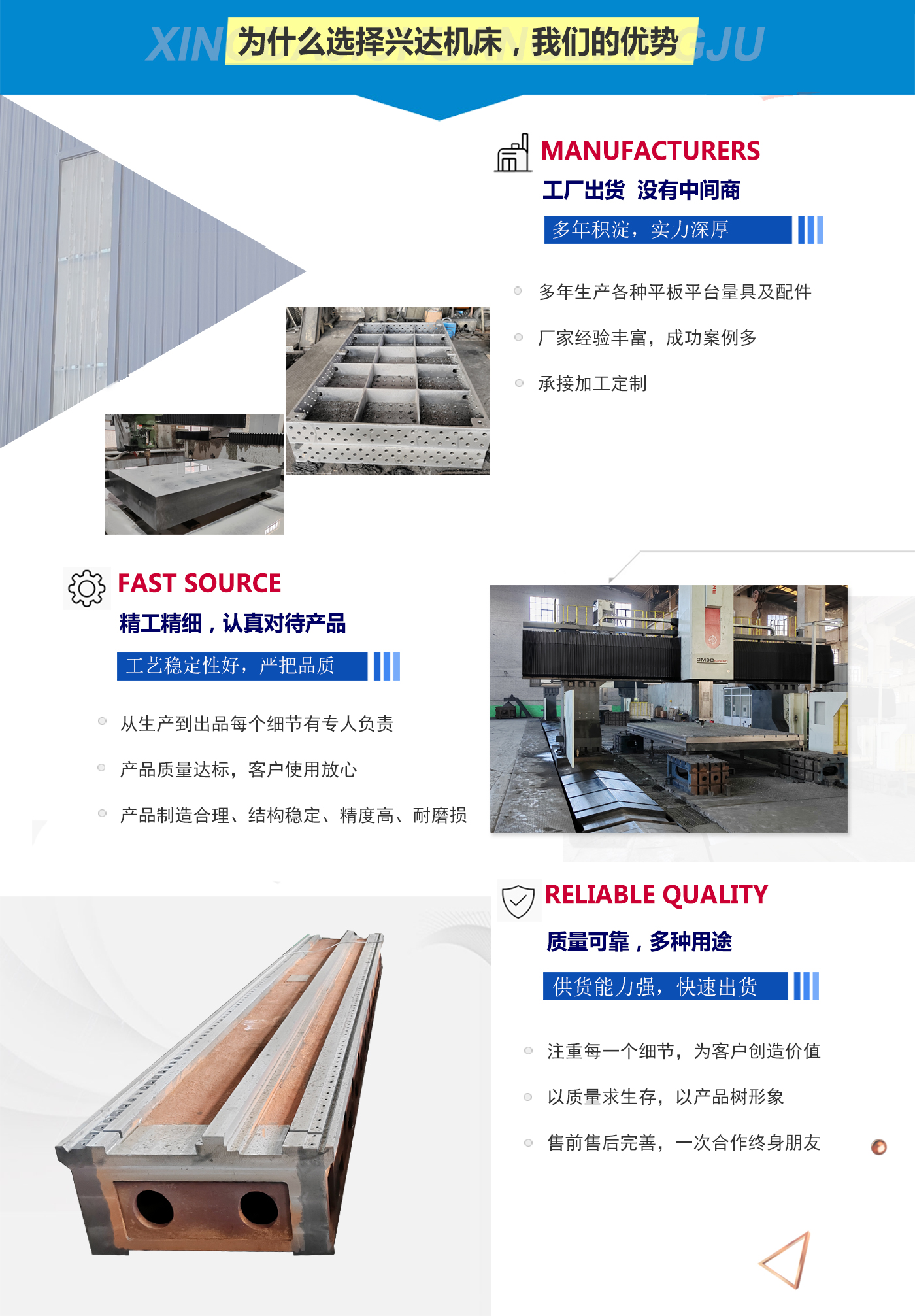 鑄鐵平臺壓砂的過程: 一步:我們要把一塊鑄鐵平臺放在工作臺上,用汽油把鑄鐵平臺擦干凈。 二步:在鑄鐵平臺上涂上少許硬脂,然后倒上用汽油泡好的M2.5的金剛砂。第三步:等汽油揮發后,滴入 10滴混合油,把下板涂勻,再在上板的四角及中心處涂些。